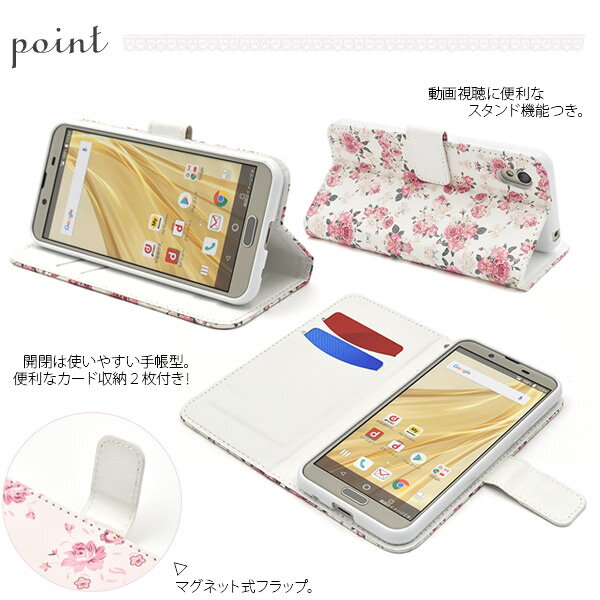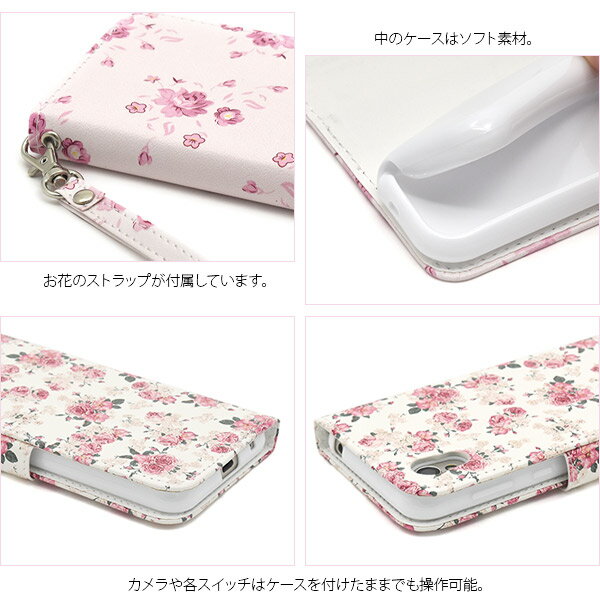 AQUOS sense2 SH-01L/SHV43/SH-M08/Android One S5用花模様手帳型ケース 華やかなお花柄の手帳型ケースです。