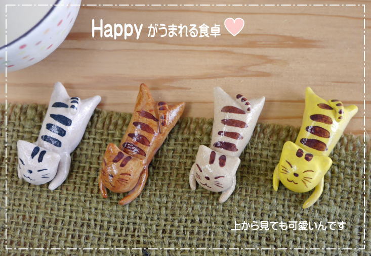 少し 小憎たらしい このお顔がなんともかわいいっ! 可愛い猫の箸置きは1つ1つ丁寧に手ひねりで作っています。