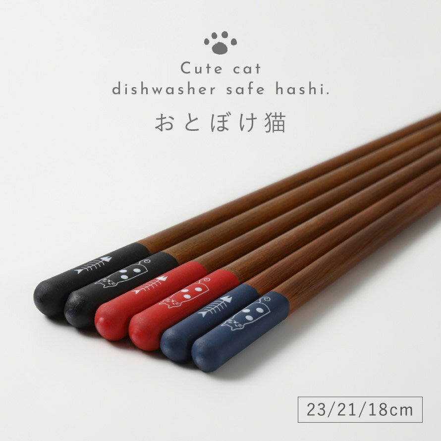 職人の手によって一本一本塗りこまれた箸に、おとぼけ猫のイラストが可愛い! 食洗機の使用可能なのも嬉しいポイント。
