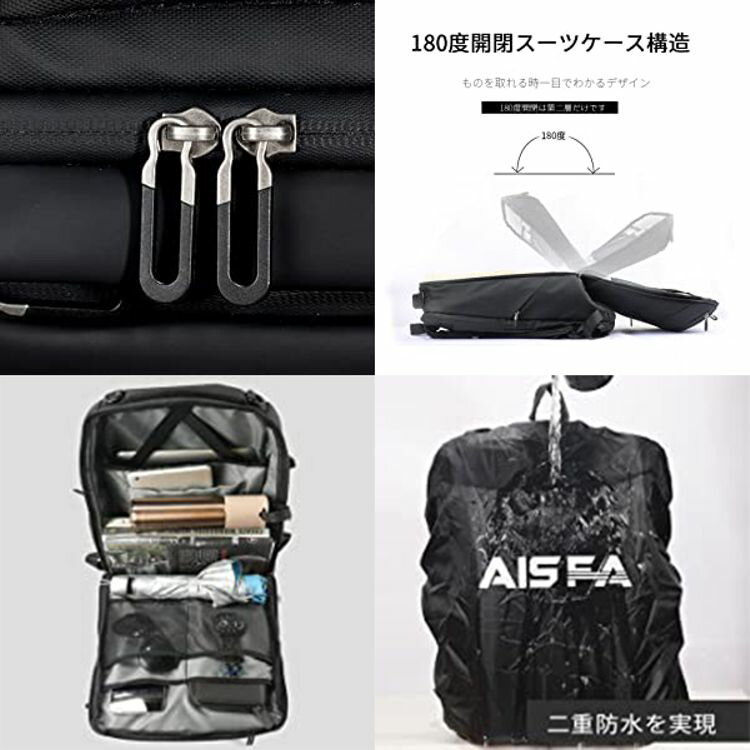 コンピュータポケット・携帯電話ポケット・ドキュメントポケットなどの機能バッグ 收納力抜群!薄い17インチパソコンでも対応!短期旅行など2〜3日分の着替えが楽々収納可能! 【30リットル大容量設計】 スクエア型+幅広マチで収納力抜群、最大17インチPC、Pad、A4サイズの書類や着替え、サングラス、帽子など必要なアイテムを、まとめて収納! 【ユニークな機能】 リュックサック 外部USB充電機能付き、背負ったまま携帯を充電できて、持ち歩く便利です、緊急用、防災用、アウトドア、キャンプなどに適用しています。