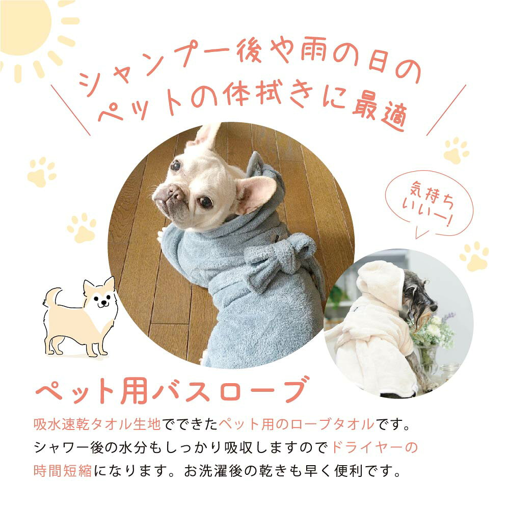 ◎超吸収・超速乾 ◎肌触りの良い生地 ◎安心・安全の品質検査済 吸水速乾タオル生地でできた愛犬用のローブタオルです。