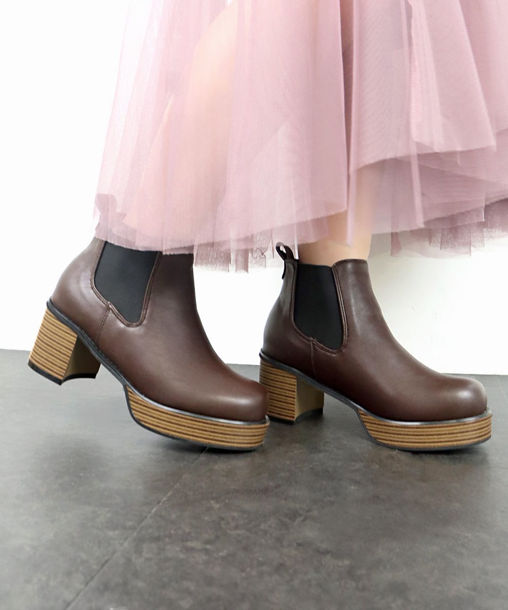 [ボントレ] チェルシーブーツ 厚底サイドゴアブーツ レディース ブラウン 22.5 cm 2E