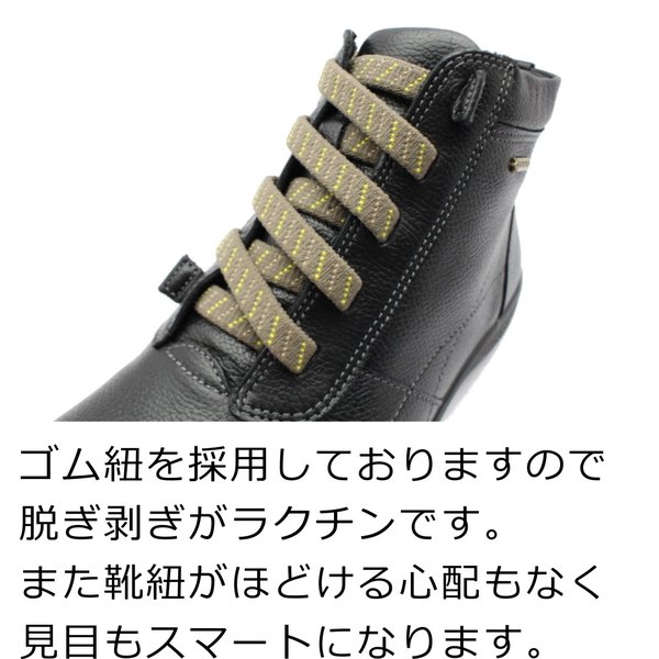 ■商品詳細(23.5cm計測) ・フィッティング:標準サイズ ・靴幅:3E ・ヒール高:約4cm ・アッパー:本革(牛革) ・重 量:310g(片足) ・機能:GORE-TEXファブリクス・アイスクロウプラス・撥水皮革・サイドファスナー付・ゴム紐仕様 ・生産国:日本