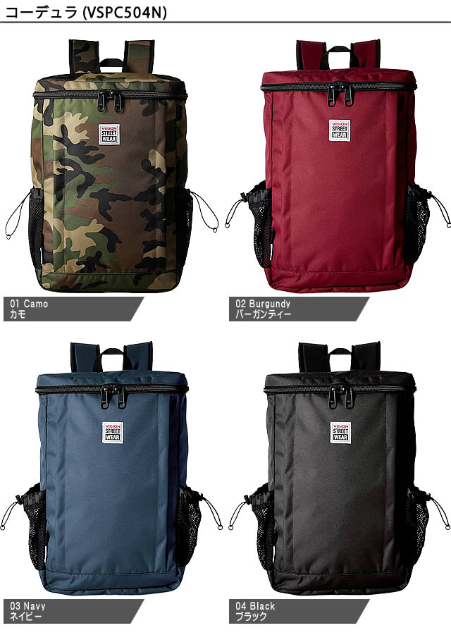 VISION STREET WEAR ヴィジョンストリートウェア ビジョン リュック リュックサック バッグ バックパック コーデュラ ナイロン 定番 大容量 防水 通学 レディース メンズ おしゃれ 旅行 ブランド 黒 カモフラージュ VSPC504N VSBL504N