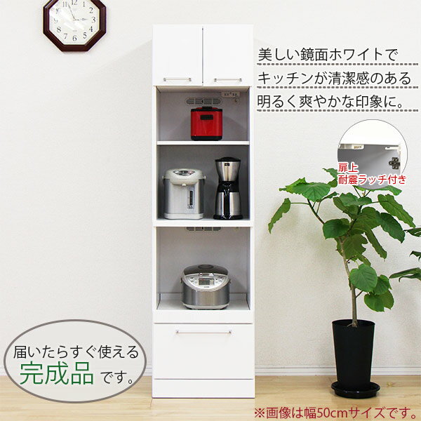 レンジボード レンジ台 トリプルレンジボード ハイレンジボード キッチンボード 鏡面仕上げ 艶あり 木製 幅60cm [ ホワイト ] 【 完成品 国産 】 カップボード