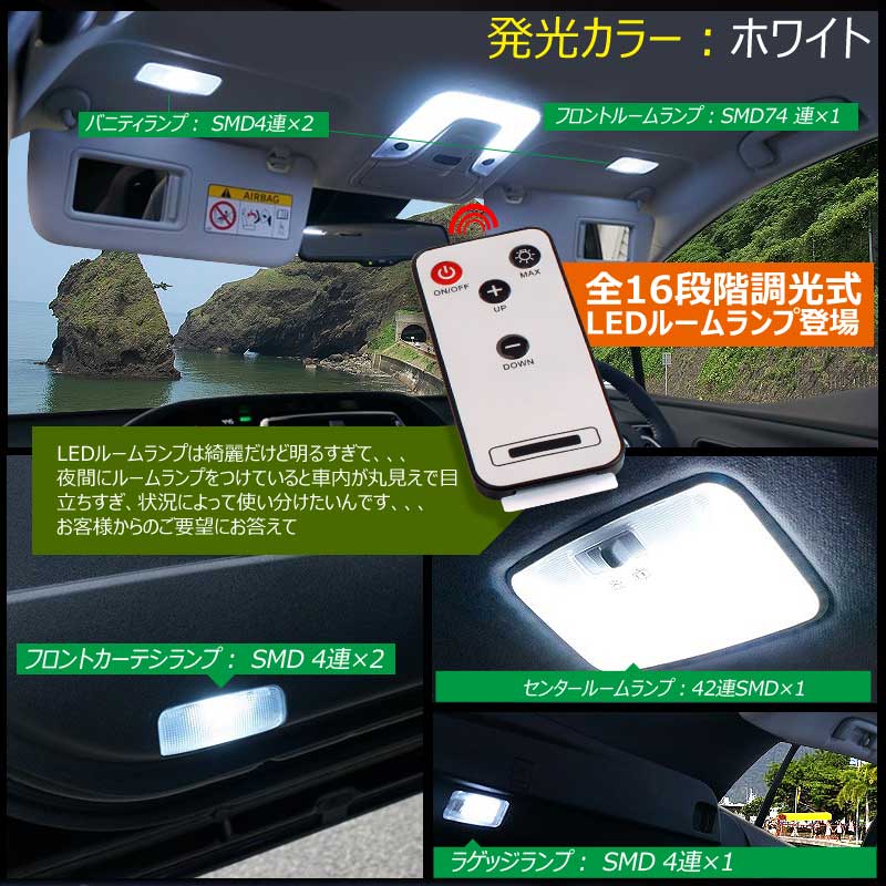 プリウス50系 Sグレード専用 調光式 LEDルームランプ 136連SMD 16段階調節可能 高輝度LED採用 リモコン付 内装 カスタム パーツ エアロ アクセサリー ドレスアップ